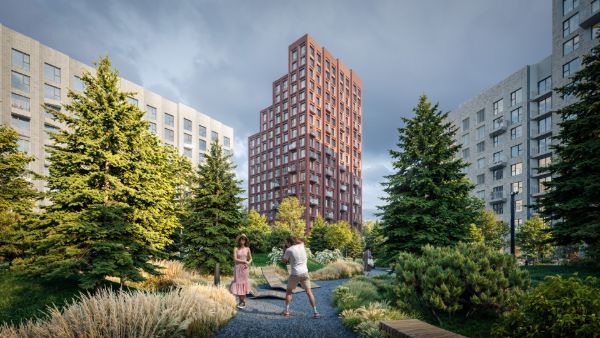 Концепция квартала сочетает эстетику и функциональность. Башня-доминанта цвета красной охры и разновысотные корпуса терракотового, белого и графитового оттенков формируют узнаваемый силуэт современного городского пространства. Просторные террасы, разнообразные балконы и окна в пол придают облику динамичность и дарят квартирам уютные места для отдыха.